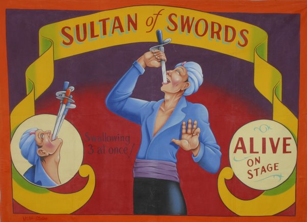 Inspired by the success of Jim Rose, a number of other troupes have sprung up in recent years, including the Blue Monkey Sideshow (Indianapolis, IN) and the Bindlestiff Family Cirkus (New York, NY). Many performers, like myself, have found work performing a one-man sideshow. We do all the acts and perform in a wide variety of venues, such as colleges, Renaissance Faires, comedy clubs, corporate events, tradeshows, theaters and tattoo shows (like the European Wildstyle Show). A few of the notable performers working today are Harley Newman, Johnny Meah (the last of the sideshow banner painters and fine sword swallower), Sideshow Bennie, Johnny Fox,Ses Carny, Erik "The Lizardman" Sprague and Doc Swan.